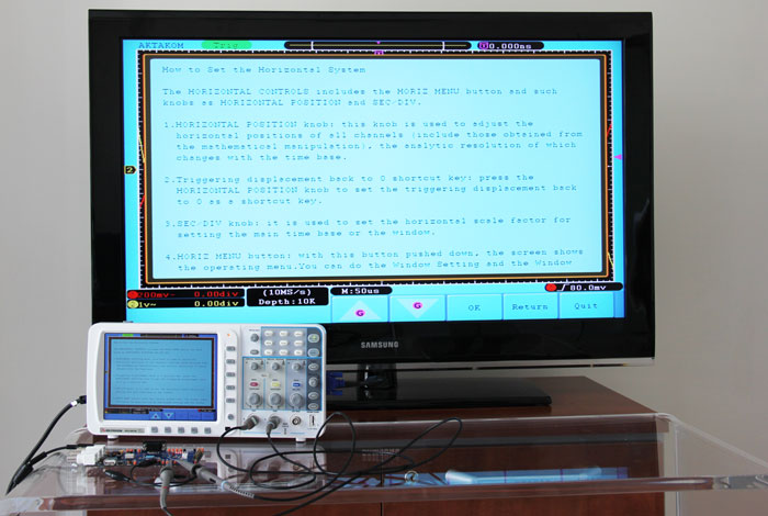 Серия ADS-2хх1M и ADS-2хххMV - это первые цифровые осциллографы Актаком с глубиной записи 10 миллионов точек на каждый канал!!! Оригинальная модель двухканального цифрового запоминающего осциллографа, которую можно отнести к гибридным, так как конструкция прибора настольная, но настолько плоская, что это скорее гибрид настольного и портативного (переносного) прибора. К тому же, прибор может работать от батареи. Вся серия ADS-2хх1M и ADS-2хх1MV – это первые цифровые осциллографы Актаком с глубиной записи 10 миллионов точек на каждый канал. Встроенное описание работы с прибором – отображается на экране (невозможно потерять «Руководство по эксплуатации)». Система синхронизации - 5 типов запуска (фронт, видео, скорость нарастания, длительность импульса, поочередный запуск). 20 автоматических видов измерений. Имеются VGA выход для внешнего монитора или телевизора. Наличие этой возможности при невысокой цене прибора наилучшее решение для применения в учебном процессе. Два вида бесплатного (в комплекте поставки) программного обеспечения: AKTAKOM DSO Soft и более мощное - AKTAKOM DSO-Reader Light с расширенной обработкой сигнала, включая фильтрацию; программное прореживание; БПФ (10 типов окон); 3 типа персистенции; сохранение в форматы AUL, *bmp, *wmf, *emf; масштабирование; настройку цветовых схем; курсорные и автоизмерения. Конструктивно осциллограф реализован в очень тонком по современным меркам корпусе (всего 7 см), имеет небольшой вес (всего 1,8 кг), удобную конструкцию ножек для двух положений применения. Цветной жидкокристаллический дисплей экрана имеет диагональ 8" (20,3 см) и разрешение 800 × 600 (65536 цветов). Очень развитая система отображения и экранное меню для управления прибором. Необычно реализовано место для батареи - снизу. Ресурса батареи достаточно для автономной работы в течение нескольких часов.