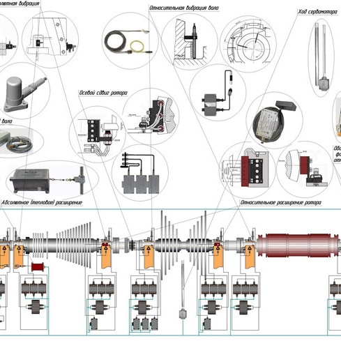 Позволяет осуществлять нерерывный виброконтроль, мониторинг и диагностику опорных конструкций, биение валов агрегата, качество центровки и сочленения роторов, изменения температурных параметров и т.д.