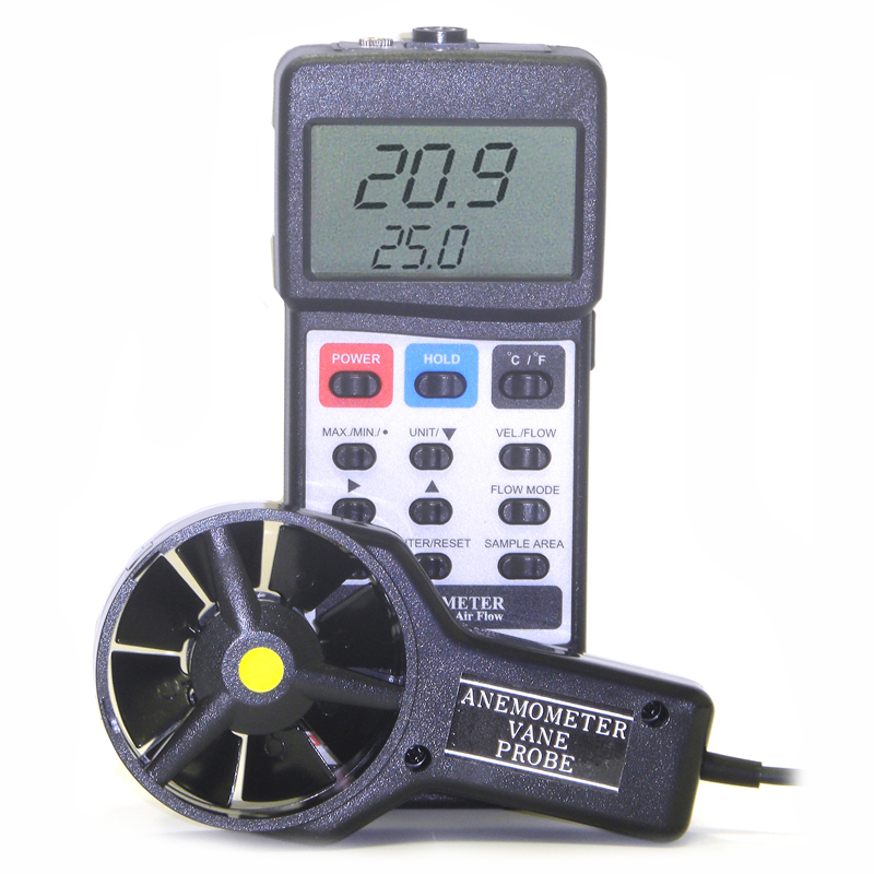 Портативный крыльчатый анемометр позволяет быстро и точно измерить скорость движения воздушного потока и передать результаты измерения в компьютер. Помимо измерения скорости прибор вычисляет объем проходящего через крыльчатку воздуха. Последнее, максимальное и минимальное измеренные значения могут сохраняться в памяти автоматически. Основные преимущества: - одновременное измерение скорости и температуры воздушного потока;